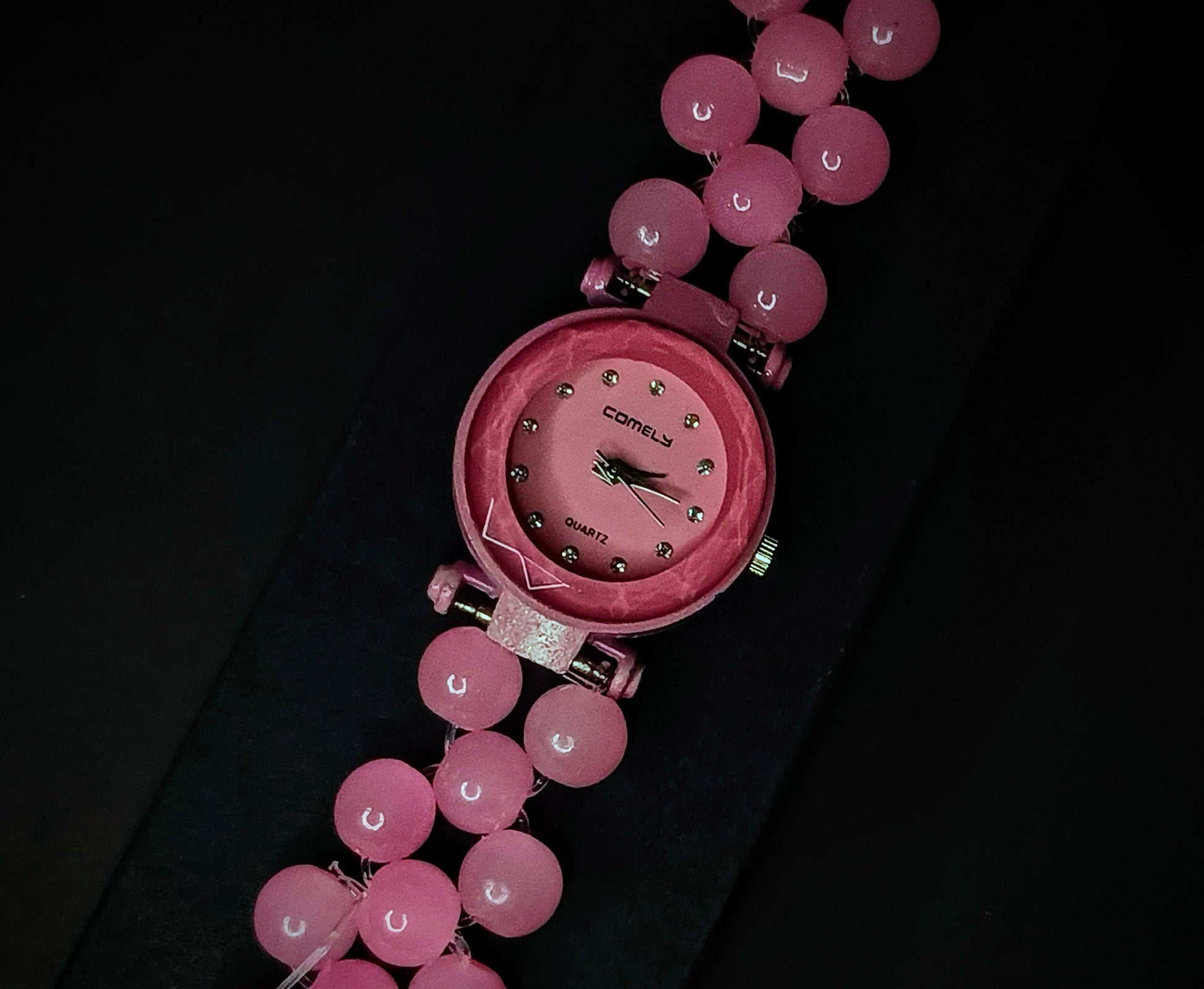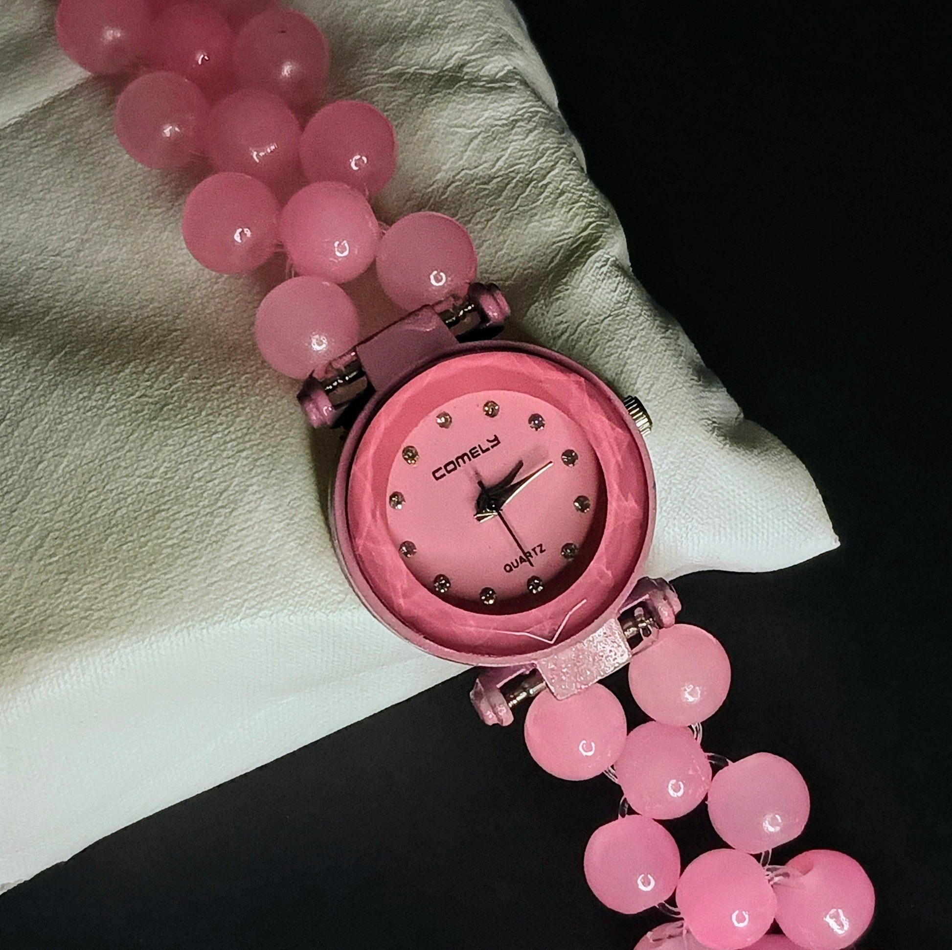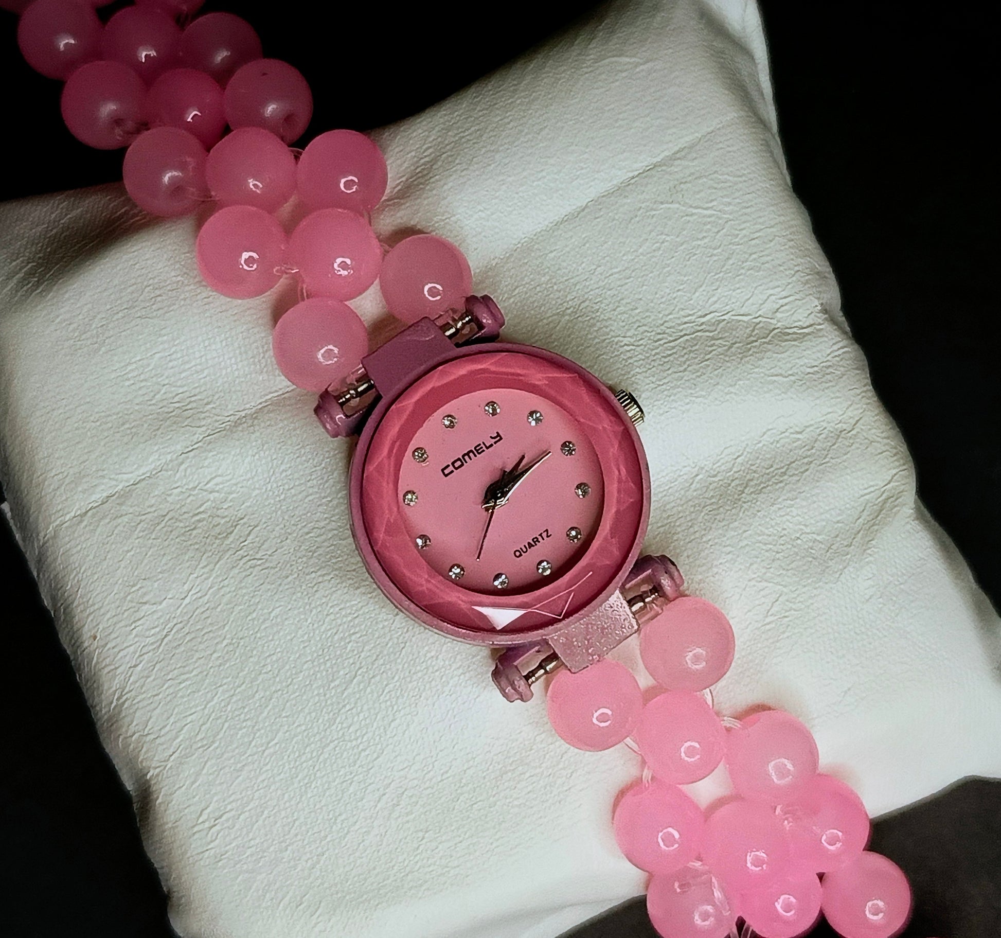 Add a pop of luxury to your wrist with this exquisite MDH Quartz Women's Watch, featuring a radiant deep blue dial encircled by sparkling crystal-studded bezel. The dual-strand bracelet is crafted from vibrant blue glass beads, creating a bold yet feminine statement. Gold-tone accents and unique number markers elevate the watch's timeless charm, making it the perfect accessory for both everyday wear and special occasions.