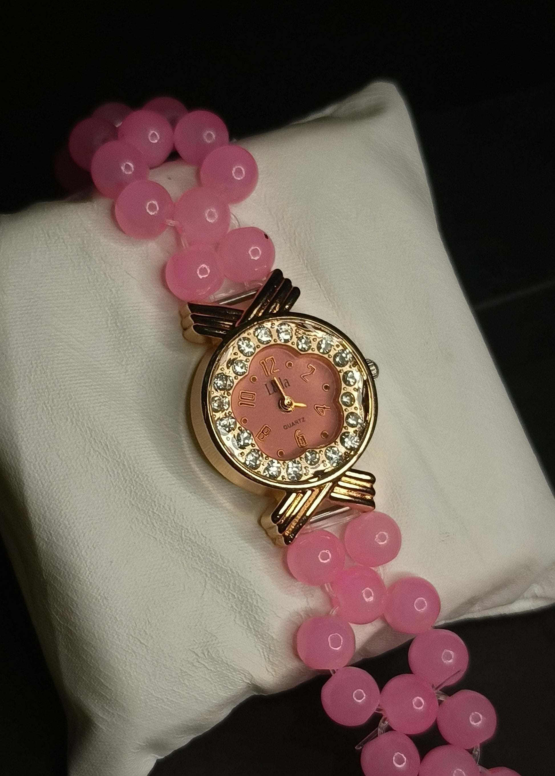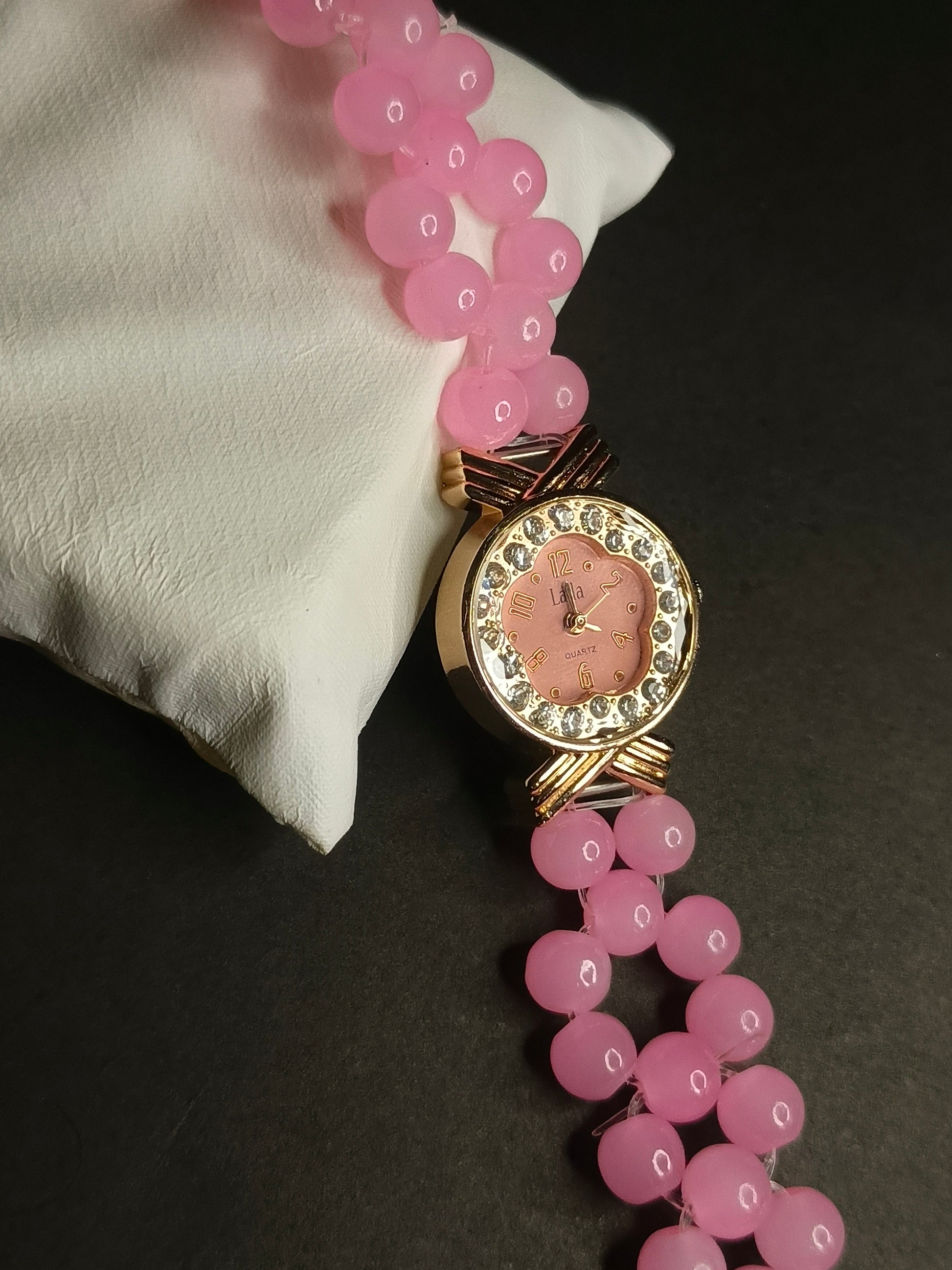 Elegant Pink Crystal Bead Women's Watch by MDH