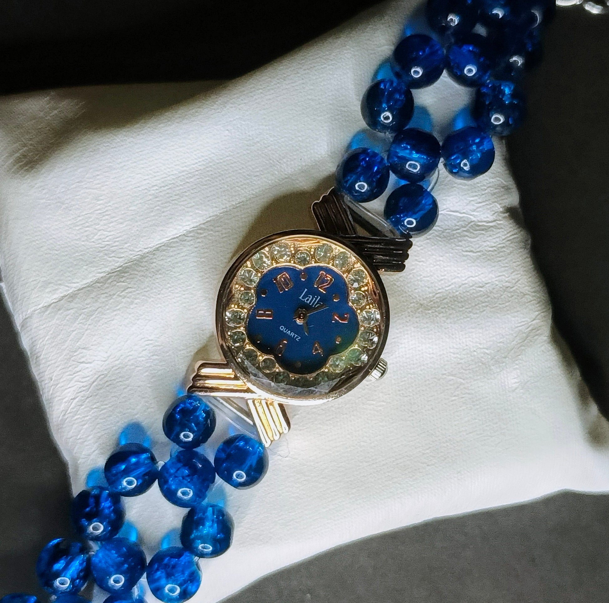 Elegant Blue Crystal Bead Women's Watch by MDH
